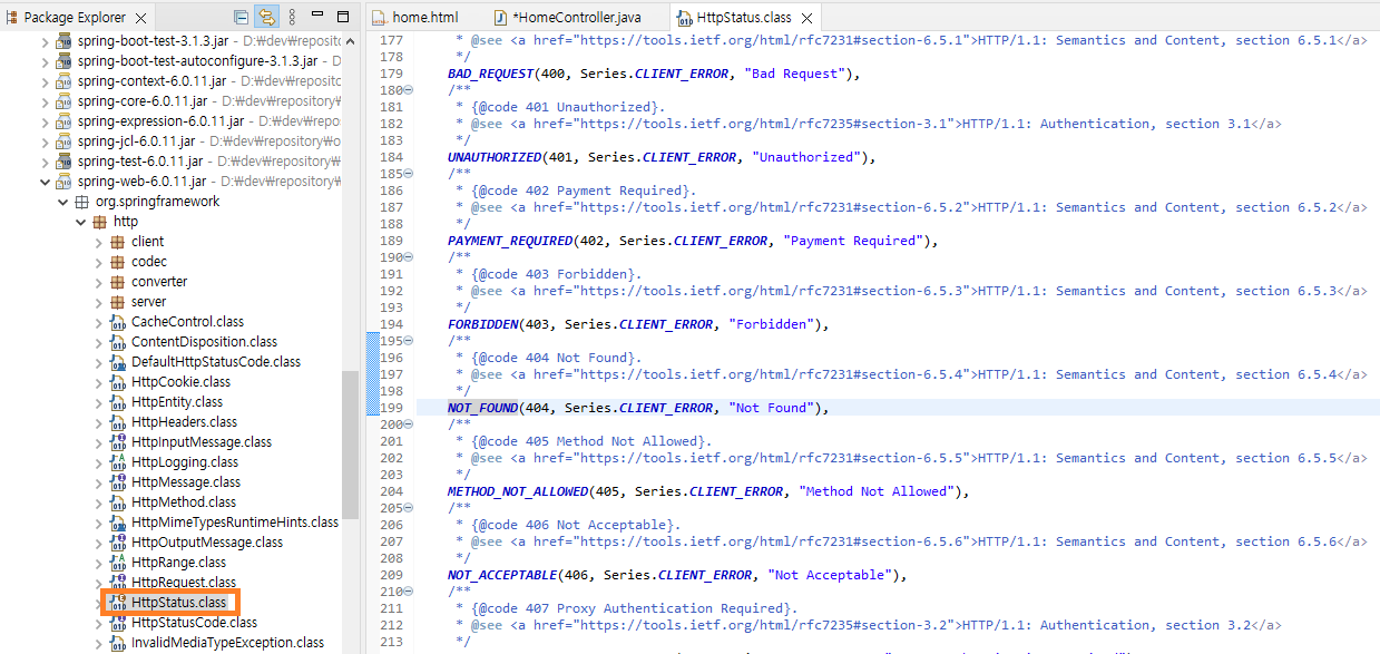 http 상태 코드는 HttpStatus 클래스에 따라 구체적으로 정의되고 있다.