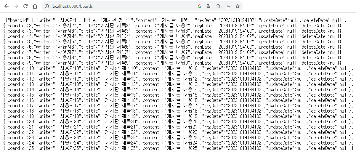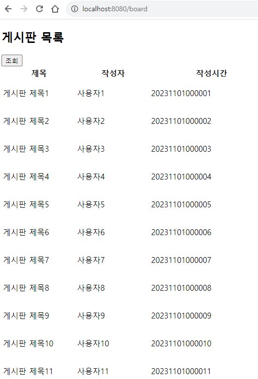 최종적으로 게시판 목록 조회 기능을 구현해봤다.