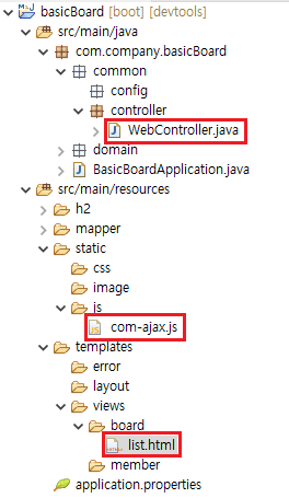 이제 기본 프로젝트 구조를 만들어서 게시판 목록을 조회해볼 것이다. 일반적으로 쓰이는 MVC 패턴으로 RestController, Service, Mapper로 구성했으며 흔히 말하는 VO, DTO 등 비슷한 역할을 수행하는 model으로 구성하여 기본 프로젝트 구조를 만들었다. 이때 REST API 방식으로 데이터를 전달하기 위해서 컨트롤러는 @Controller가 아닌 @RestController으로 선언했음을 기억하자.