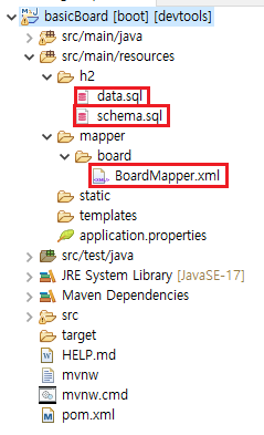 관념적으로 데이터 정의어(DDL)는 schema.sql 파일에 작성하고 데이터 조작어(DML)은 data.sql 파일에 작성하는데, 아래 5번에서 이 파일들을 작성할 예정이다.