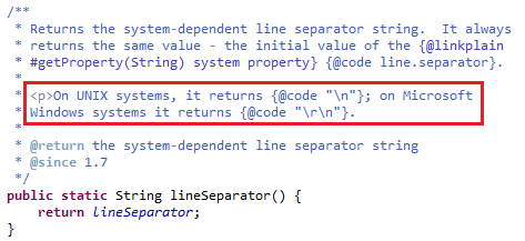 참고로 System.getProperty("line.separator") 으로 사용해도 동일한 결과가 나오지만, 자바7 이상이라면 System.lineSeparator()를 사용하자.