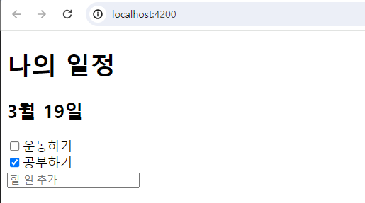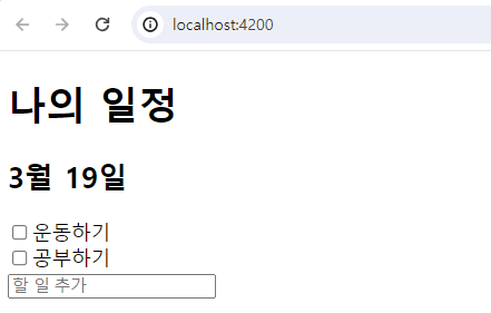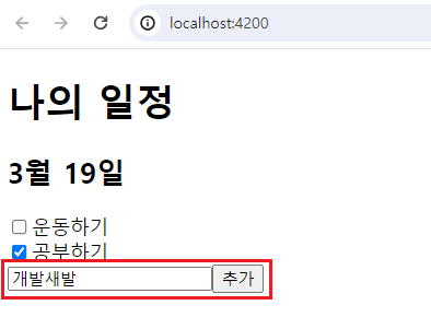 결과는 아래와 같다. 입력란에 일정을 추가하면 새롭게 일정이 추가된다.