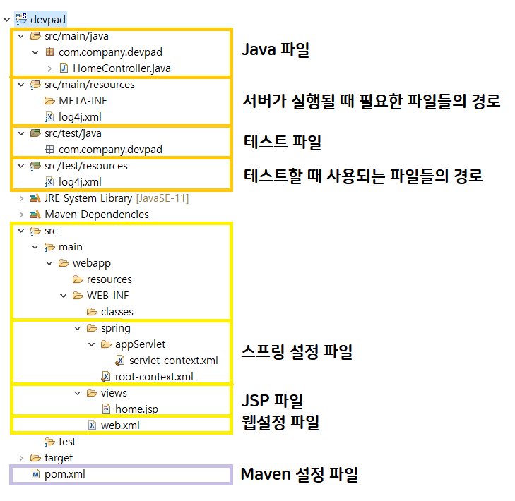 그다음으로 <context:component-scan base-package="com.company.devpad" /> 부분을 보자. 이 부분은 스프링에서 사용하는 bean을 일일이 xml에 선언하지 않고도 필요한 것을 어노테이션(Annotation)을 자동으로 인식하게 하는 역할을 한다.