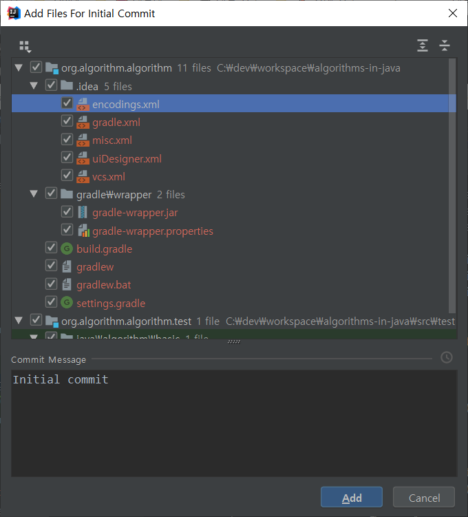 IntelliJ에서 [File] - [New] - [.ignore file] - [.gitignore file (Git)] 클릭한 후 'Gradle'을 검색하여 추가한다.