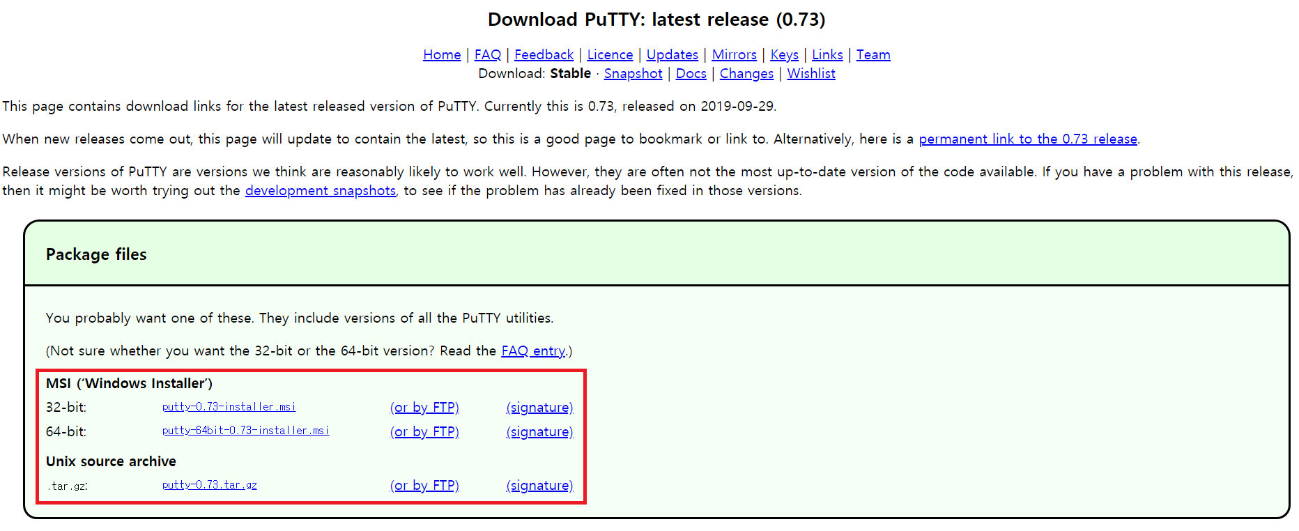 Putty 프로그램을 이용하여 원격 서버에 접속을 할 것이다. Putty 사이트에서 자신의 운영체제에 맞는 파일을 설치한다. 기본 설치 경로는 C:\Program Files\PuTTY 이다.