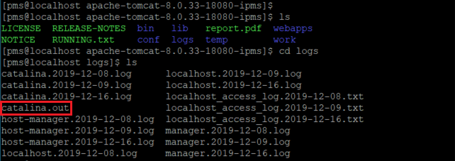 (개인 기록: 이 때, 개발계로 들어가고 싶었는데 운영계로 붙어서 catalina.out 로그에 접속했더니 '그런 파일이나 디렉터리가 없습니다'는 에러가 발생하였다. 처음 로그인을 하면 /home/pms 로 붙는데, 나는 /home/pme-dev 로 붙었어야 한다. )