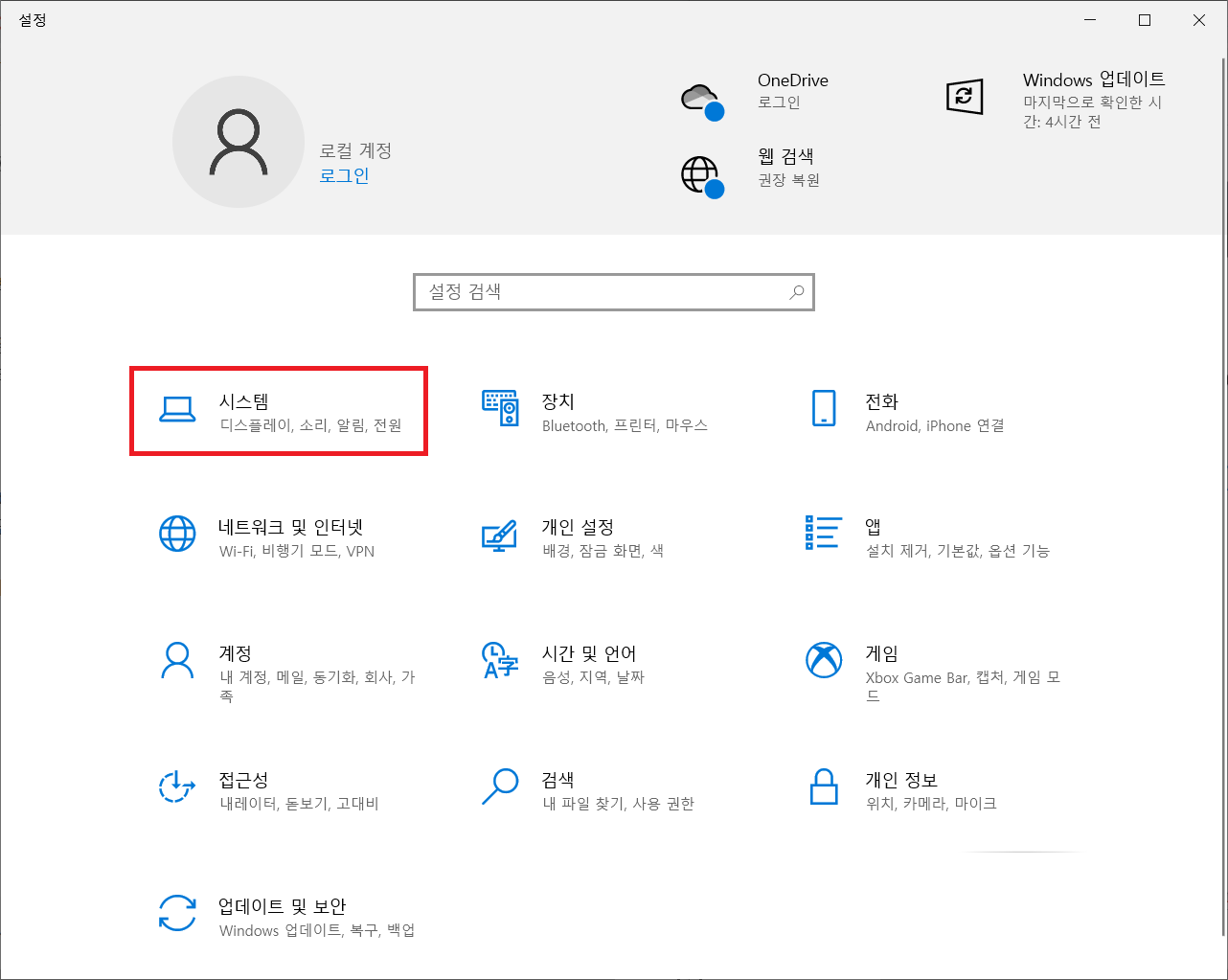 이제 내 PC의 비트를 확인해보자. 윈도우키+i 키를 눌러 아래의 설정창이 뜨면 '시스템'을 클릭한다.