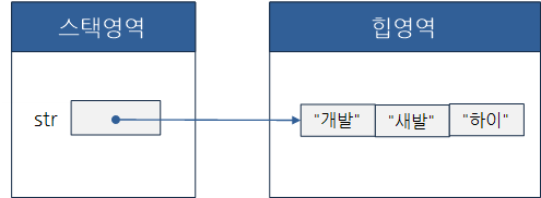 String str2 = new String("개발새발"); // new 연산자로 문자열 생성 (String Object)