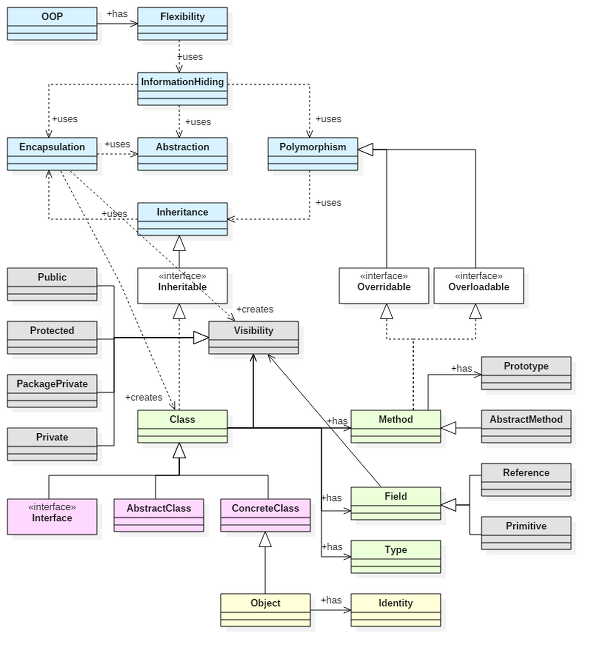 - 클래스 개념은 인터페이스(Interface), 추상 클래스(Abstract Class), 구체 클래스(Concrete Class) 개념을 파생시킨다.