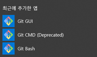 그러면 아래와 같이 프로그램이 설치된다. (참고로 환경변수 Path 변수에도 C:\Program Files\Git\cmd 이 추가된다) 앞으로는 이 중에서 'Git Bash'를 사용할 것이다.