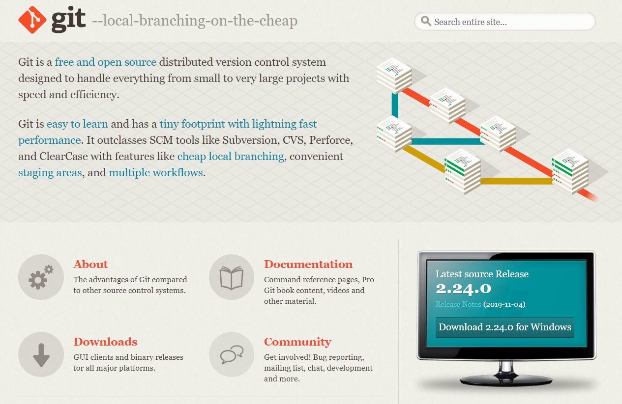 https://git-scm.com/에 들어가서 Git을 설치한다. 기본 설정 그대로 설치하면 된다. Git이 설치되는 경로는 C:\Program Files\Git이지만, 나는 편리하게 관리하기 위해 C:\dev\Git에 설치하였다.