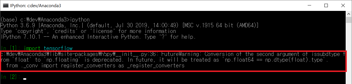 이제 ipython 을 실행하면 FutureWarning이 사라진 것을 확인할 수 있다.