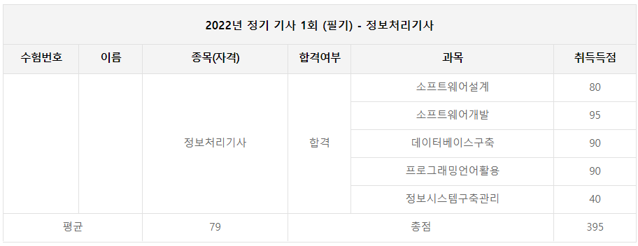 2022년 3월 정보처리기사 1회 차 필기를 합격했다. 5과목에서 과락 직전까지 가서 아슬아슬했지만, 뭐 어쨌든 결과만 합격이면 된 거 아닐까?><ㅎ