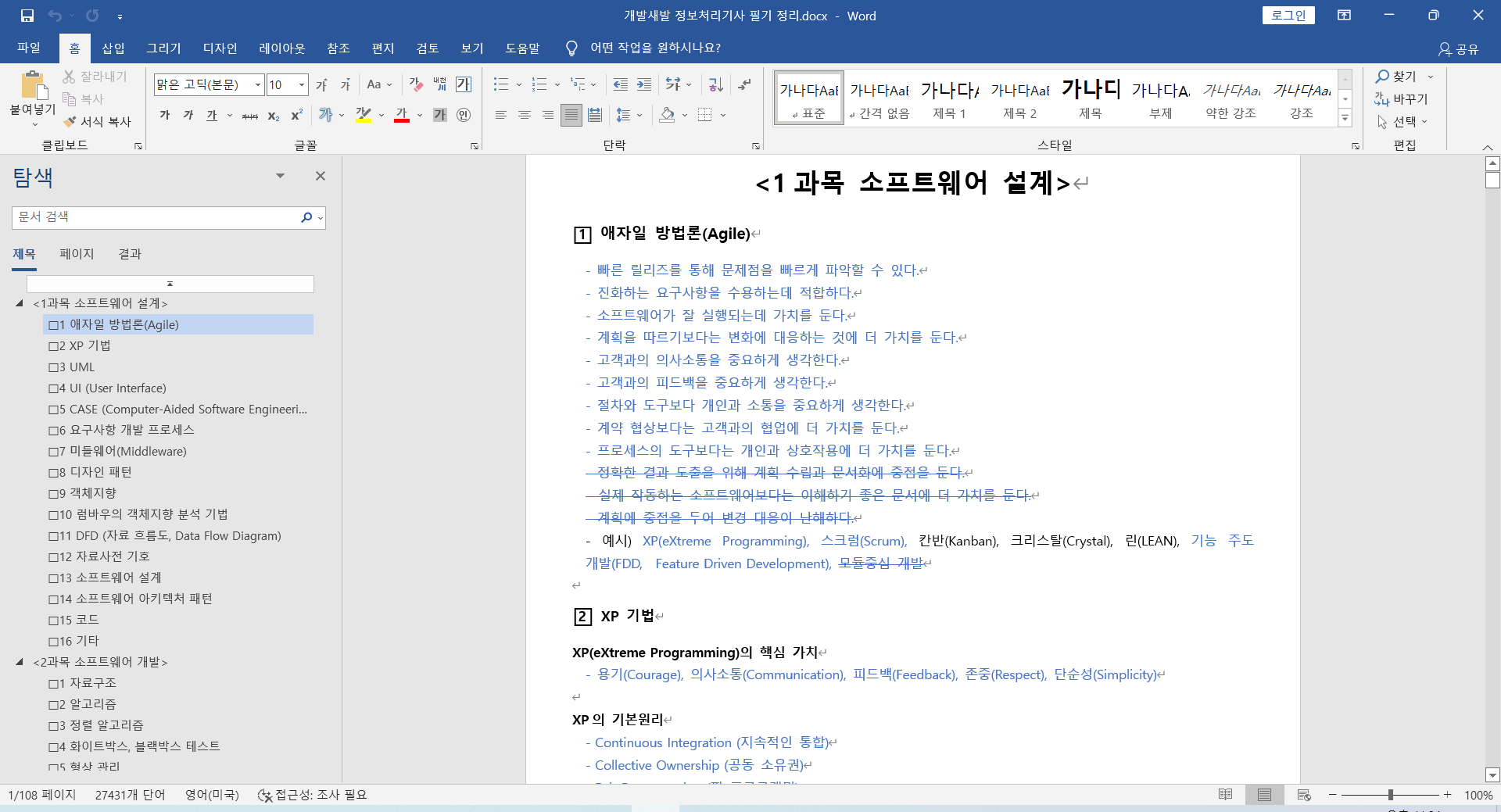 나는 정리하고 요약하는 것을 좋아하는 편이어서, 블로거님의 요약본을 기반으로 내가 별도로 정리본을 만들기 시작했다. 개정 후 cbt 문제를 반복적으로 풀면서 자주 나오는 문제 유형의 우선순위대로 정리하였다. [Ctrl +F]를 누르면 아래처럼 탐색 창이 뜨는데 키워드를 확인할 수 있어서 좋았다.