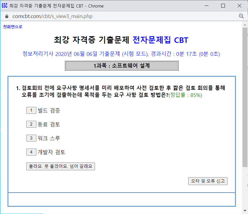 요약본 보는 것이 슬슬 질릴 때쯤 전자 문제집 CBT에서 정보처리기사 개정 후의 문제를 풀어보았다. cbt는 모바일로도 문제를 풀 수 있으니 언제든지 시간이 날 때 문제 풀기에 좋았다. 2021년도 3회 차를 연속해서 풀어보니 낯익은 단어들이 조금씩 눈에 들어왔다. 반복되는 문제 유형이나 익숙한 문제들이 보이기 시작했다.