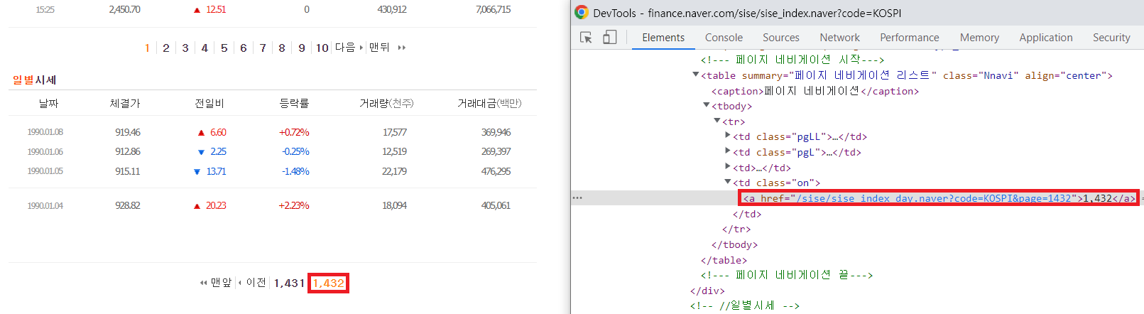 <a href="/sise/sise_index_day.naver?code=KOSPI&page=1432">맨뒤